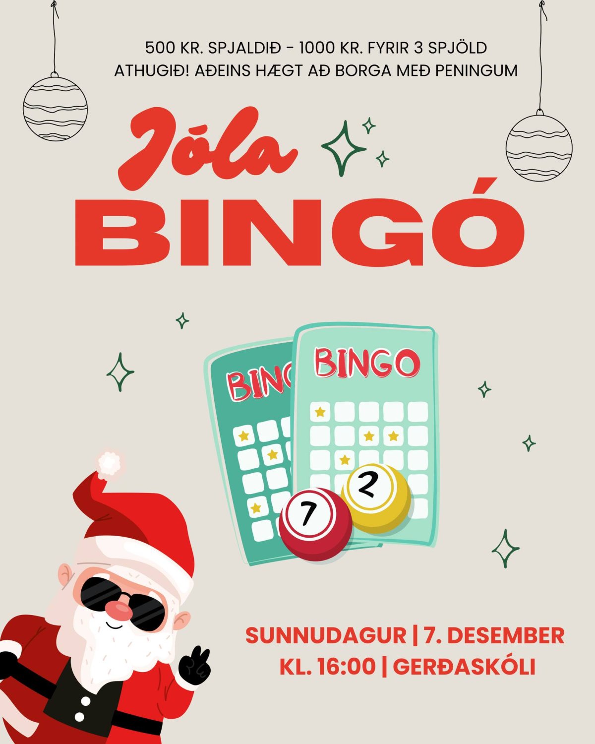 Jólabingó foreldrafélags Gerðaskóla verður haldið sunnudaginn 7. desember kl. 16:00 á sal skólans.
